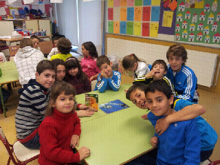 El alumnado de 6ºB de la clase de Marta visita a I4B de Ana María y a I5B de Fabi para llevarles las semillas de tomate y lechuga respectivamente.